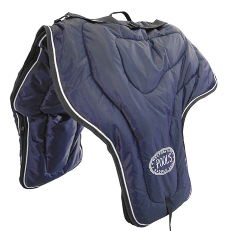 Borsa porta sella western Pool’s in nylon imbottita con manici. La borsa porta sella è un’ ottima soluzione per trasportare le selle western risultano pratiche, comode ed efficace per proteggere le selle da eventuali urti. La borsa porta sella è lavabile in acqua ed è dotata di una comoda zip per la chiusura.
