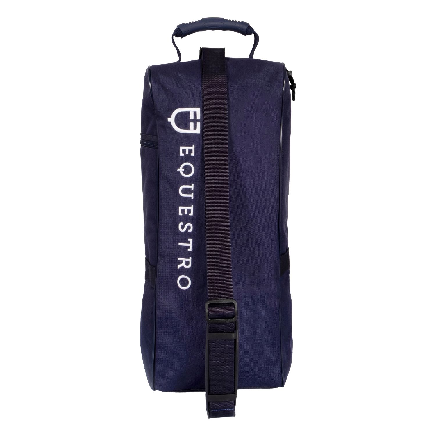Borsa Equestro porta stivali e cap in poliestere idrorepellente e gomma. Dotata di maniglia ergonomica in nylon, tracolla regolabile e zip posteriore per tutta la lunghezza per inserire ed estrarre comodamente gli stivali. Prese dโaria e taschino laterale porta oggetti.