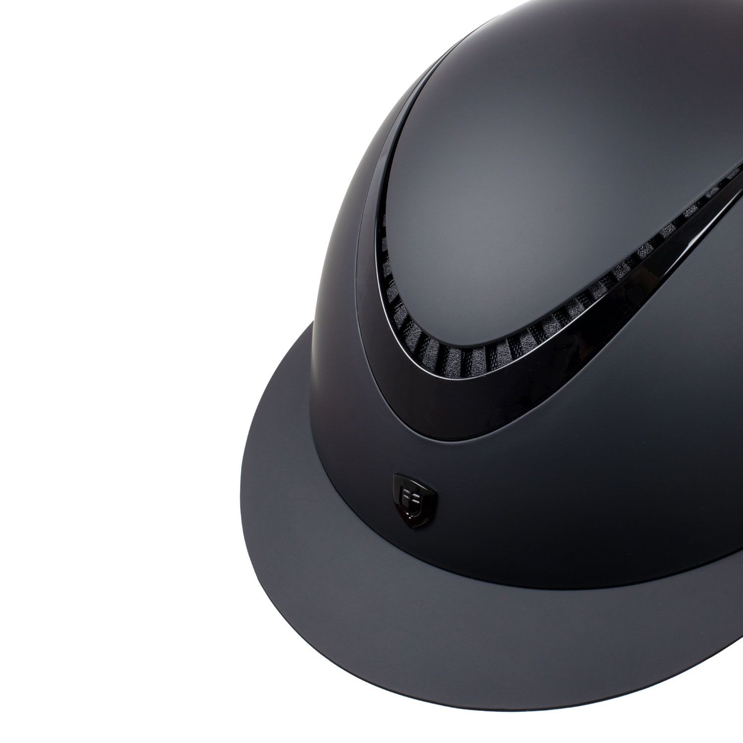 La presenza della targhetta con Logo tono su tono con il frame, rende il casco elegante e raffinato, in pieno stile Equestro.