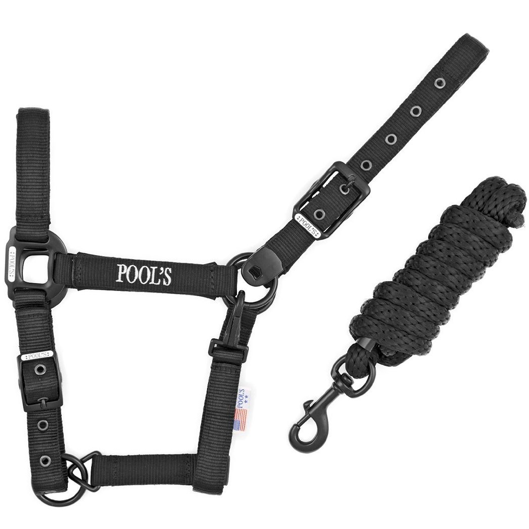 Cavezza Pool’s in nylon rinforzato ed interno in neoprene completa di lunghina. La cavezza Pool’s è realizzata con materiale di qualità superiore, la qualità e le rifiniture la rendono unica nel suo stile. L’ interno della Cavezza Pool’s è in neoprene per garantire al cavallo un maggiore comfort ed una maggiore protezione antifiaccatura, la lunghina in dotazione è in nylon intrecciato tonda. Le fibbie ed il moschettone sono nere e robuste. Doppia regolazione.