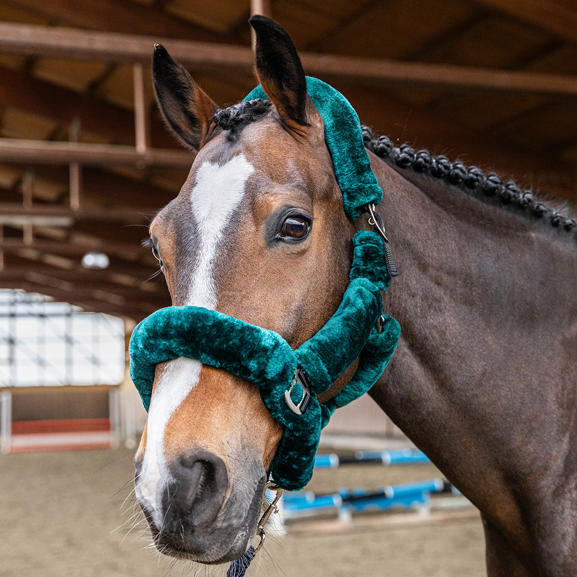Cavezza ricoperta in lana sintetica con fibbie satinate regolabile, La cavezza offre unโ€™ ottima protezione al cavallo ed un maggiore comfort alla cavezza.