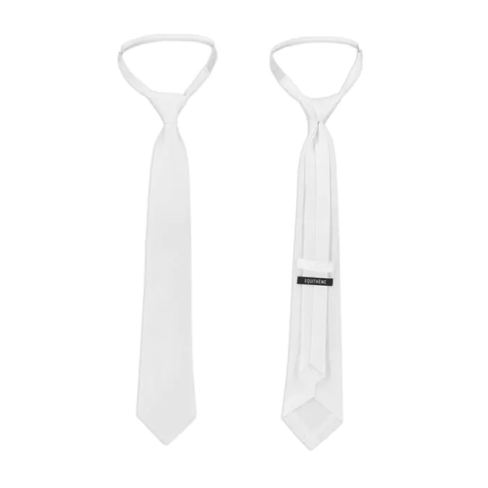 Cravatta da concorso EQUITHรˆME con elastico, giร  allacciata per una maggiore praticitร . La cravatta รจย dotata di una fascia elastica che si adatta discretamente sotto il colletto della camicia o della polo da competizione.