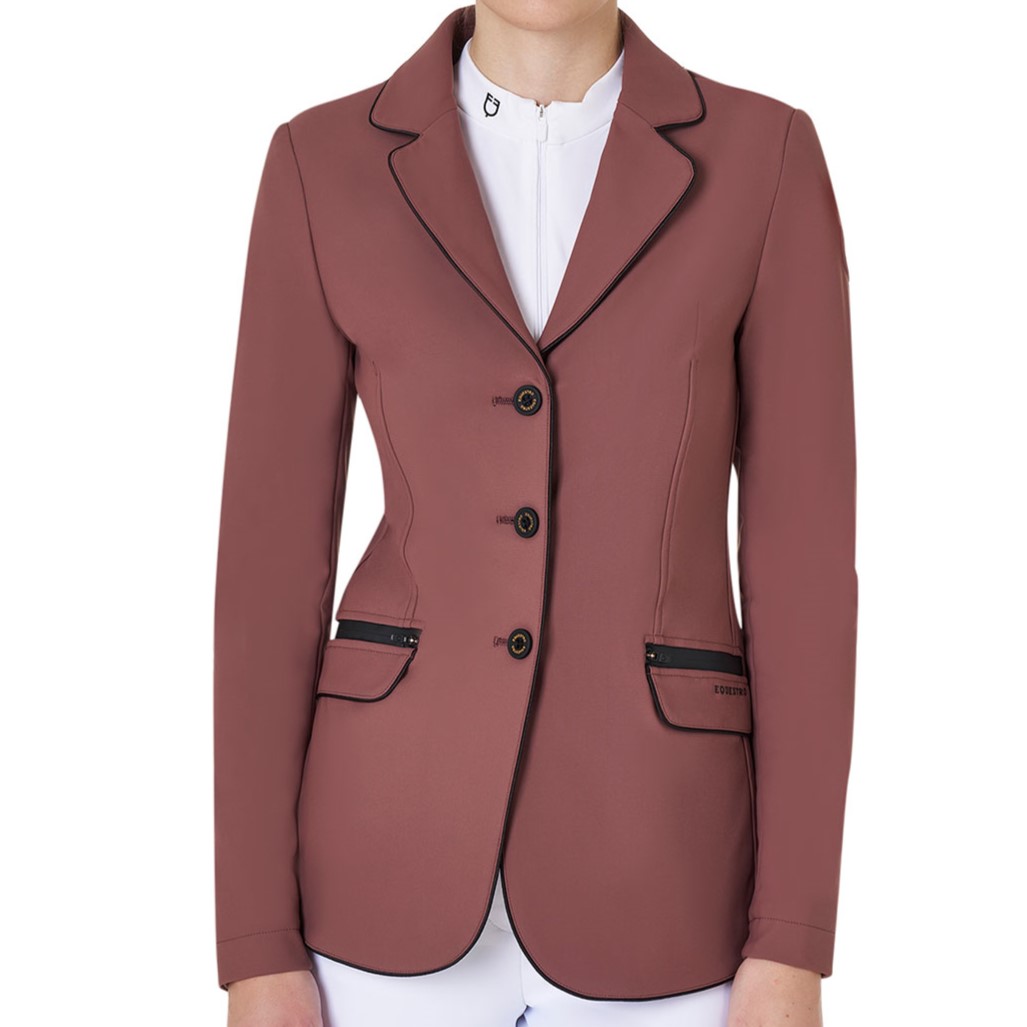 Giacca Equestro da donna,ย tre bottoni, taglio classico, con inserti a contrasto. Tasche frontali a soffietto con zip antivento e impermeabili e polsini con chiusura a tre bottoni.