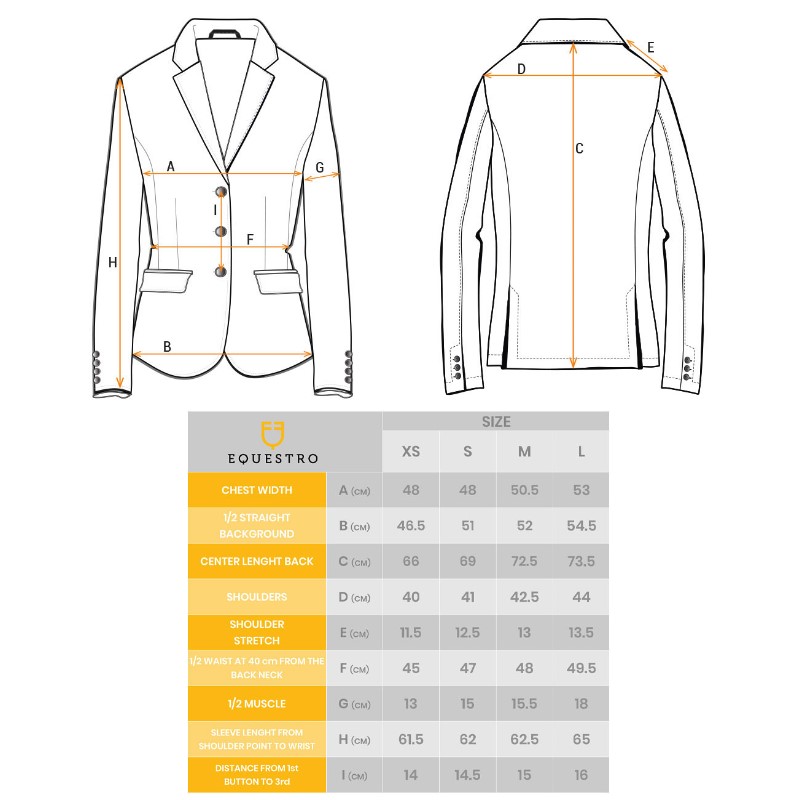 Il capo presenta quattro bottoni frontali, pratiche tasche con zip e polsini con chiusura a tre bottoni. La struttura ergonomica rende la giacca particolarmente adatta all’uso sportivo senza però tralasciare l’eleganza tipica dei prodotti Equestro, grazie al logo Equestro ricamato sulla spalla sinistra.