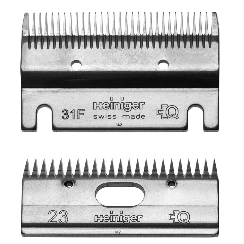 Lama per Tosatrice Heinigerย  inferiore 31F. Lunghezza pelo dopo la tosatura: 1 โ€“ 2 mm. Lama superiore 23. Realizzate con materiale di qualitร  superiore.
