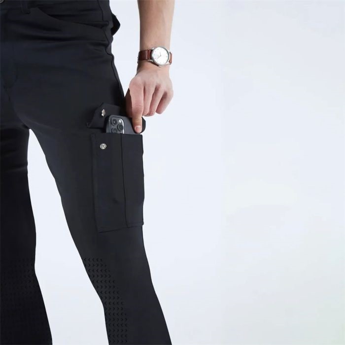 Pantaloni Equityum Uomo modello Elia, realizzati intessuto tecnico con grip al ginocchio. Il pantalone è realizzato per offrire il massimo comfort mentre si è in sella durante gli allenamenti o concorsi. Pantalone dotato di tasche laterali.