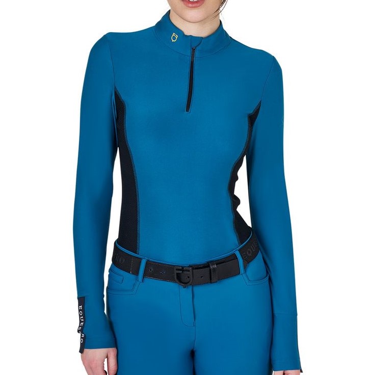 Polo Equestro Donna Allenamento Manica Lunga Blu Coral