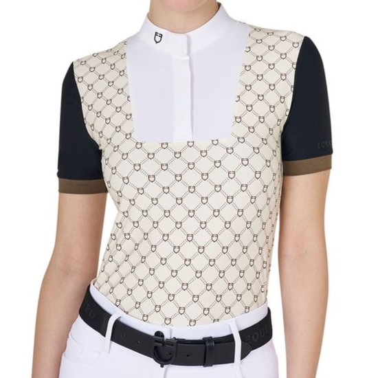 Polo Equestro Donna da concorso in tessuto tecnico con fantasia monogram. La polo offre uno stile elegante per le tue occasioni equestri.