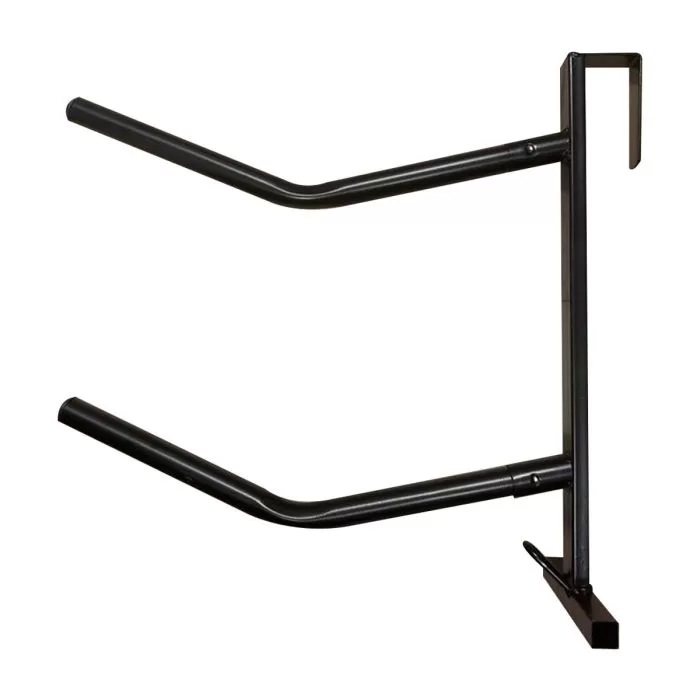 Portasella a 2 Posti fisso. Ottima soluzione per alloggiare le selle sia in box che in viaggio. Dotato di aggancio per essere appeso anche nelle staccionate durante i concorsi o le varie escursioni.