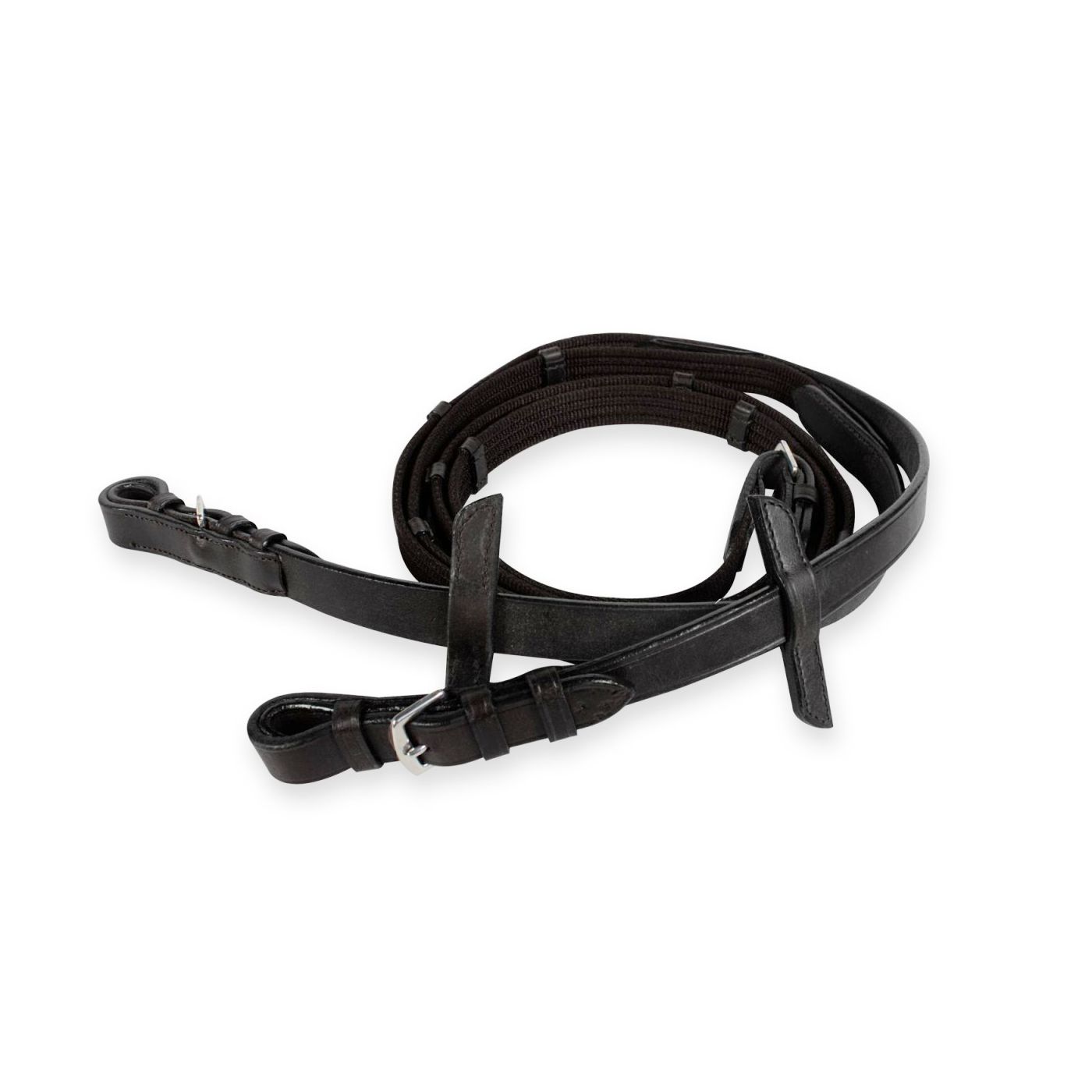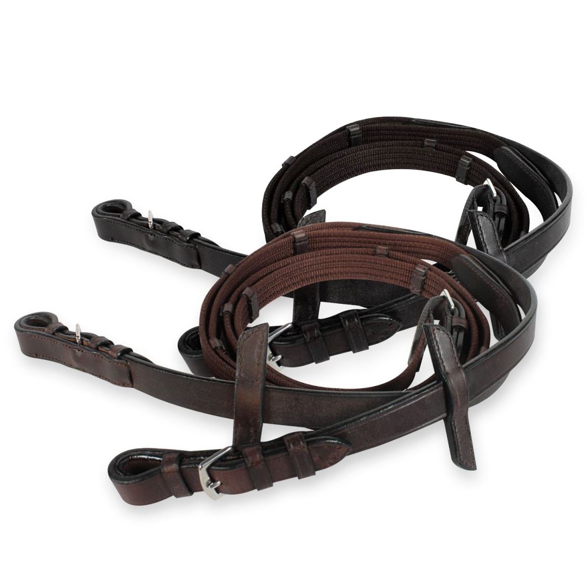 Redini inglesi in morbido tessuto modello Goodline dotate di tacchette antiscivolo. Le redini sono realizzate in morbido tessuto per offrire un ottimo comfort ed un’ ottima presa durante il loro utilizzo. Rinforzate con parti in cuoio.