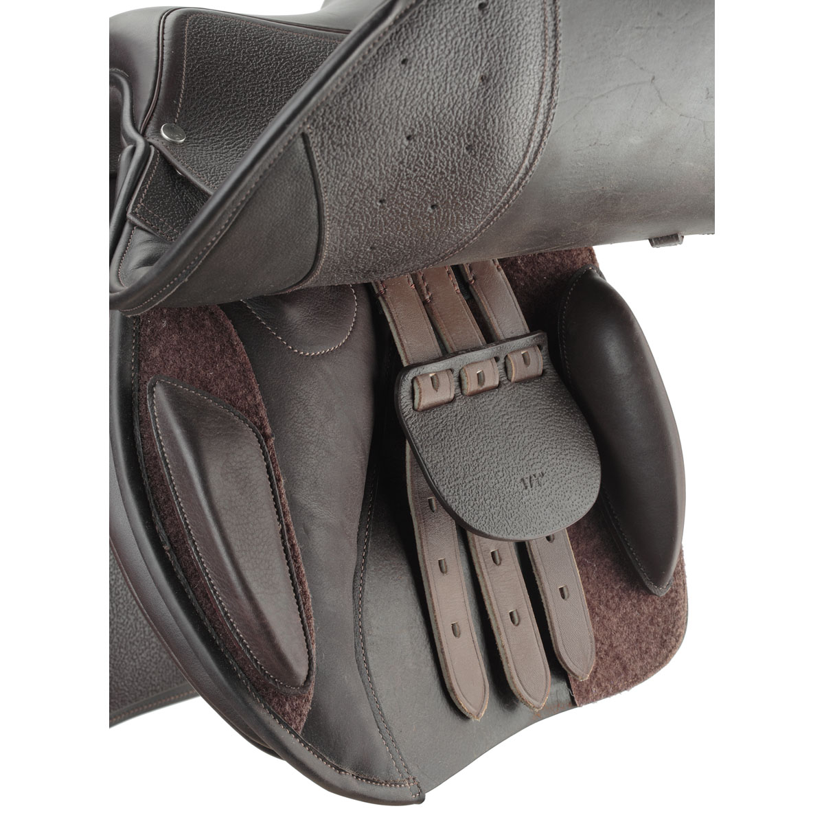 Sella dal nuovo assetto e inforcatura molto stretta per favorire la comoditร del cavaliere ed il miglior contatto con il cavallo; cuscini imbottiti in lana siliconica, nuove imbottiture sul seggio e soprattutto sui cuscini anteriori, dove appoggia il ginocchio, che sono stati resi piรน morbidi e aderiscono meglio sia alla gamba che agli appoggi anteriori, di cm 16 x 3,5 (h), ridisegnati per dare maggiore supporto. Sia gli appoggi anteriori che posteriori sono rimovibili e regolabili a strappo. La sella รจ fornita con lโarchetto in dotazione di cm 28 (blu, misura M) e con il coprisella.