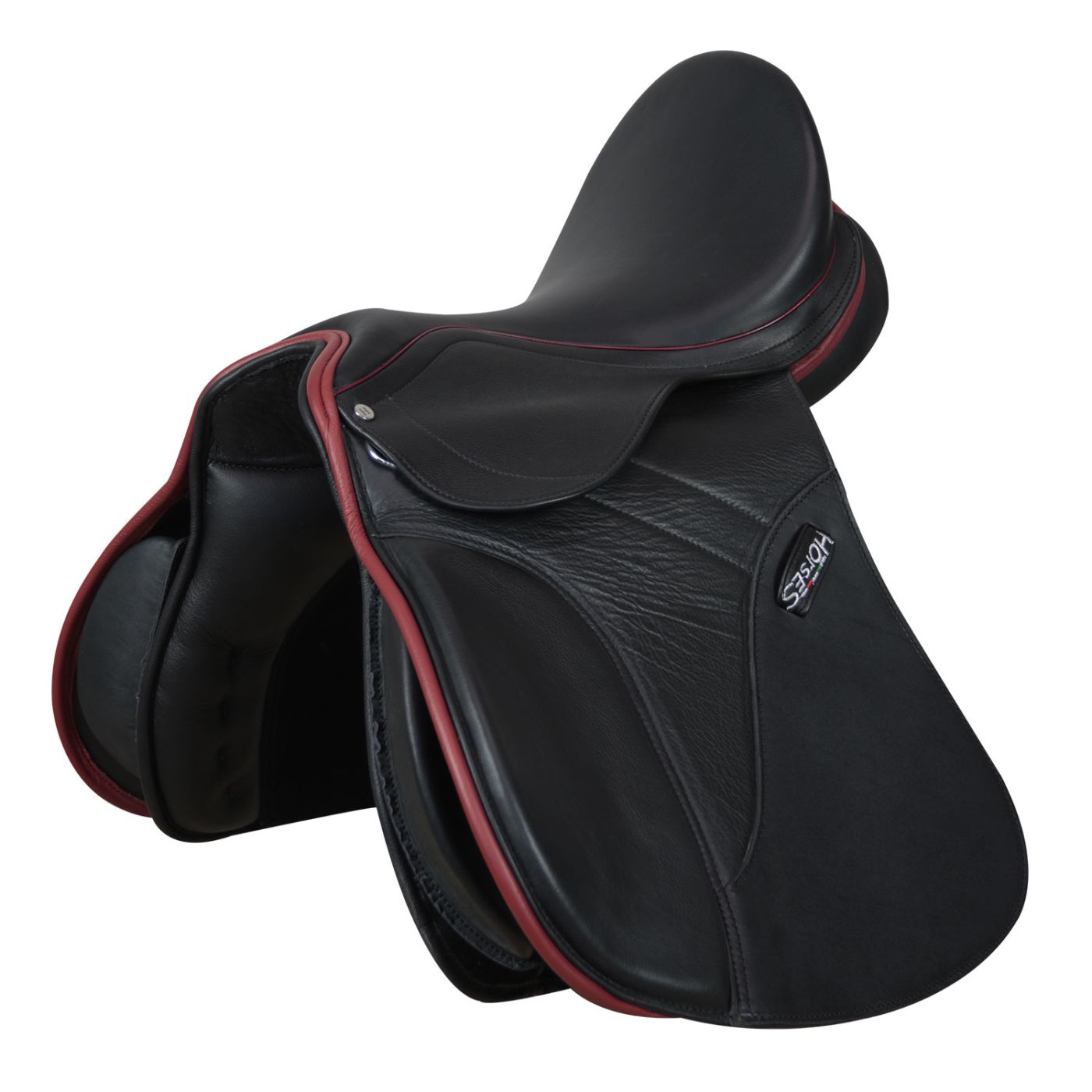 Sella Inglese Horses modello Pisa รจ una sella realizzata in morbido cuoio di alta qualitร ed stata per il salto ad ostacoli ma perfetta anche in passeggiata. Ha imbottiture per il massimo comfort, appoggi removibili e riposizionabili, quartieri tondi rinforzati, paletta tonda tre riscontri per il sottopancia. Questa sella รจ abbellita con finiture a contrasto di colore bordeaux che la rendono unica ed elegante.