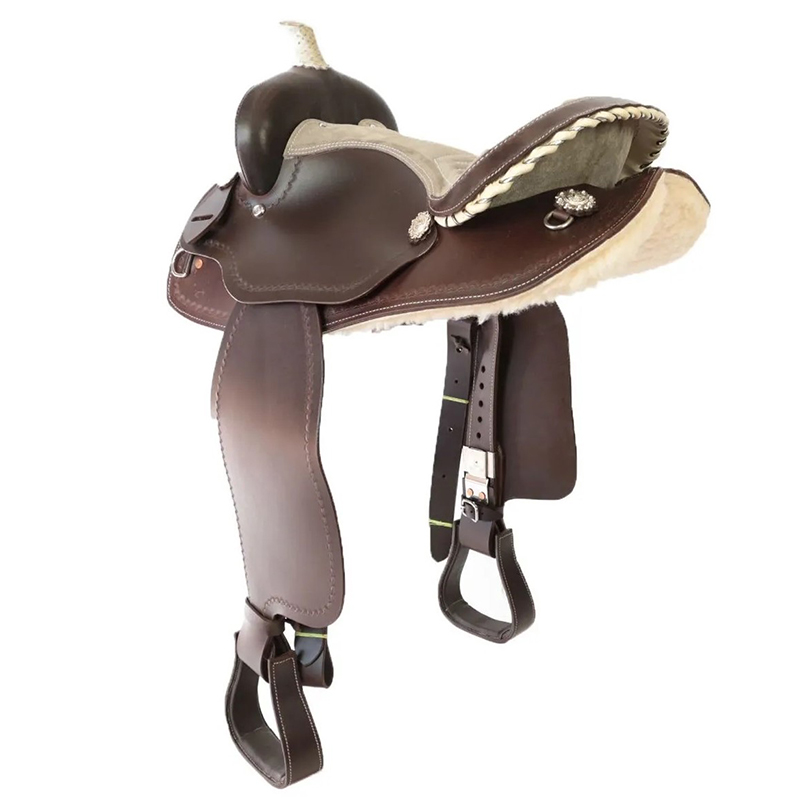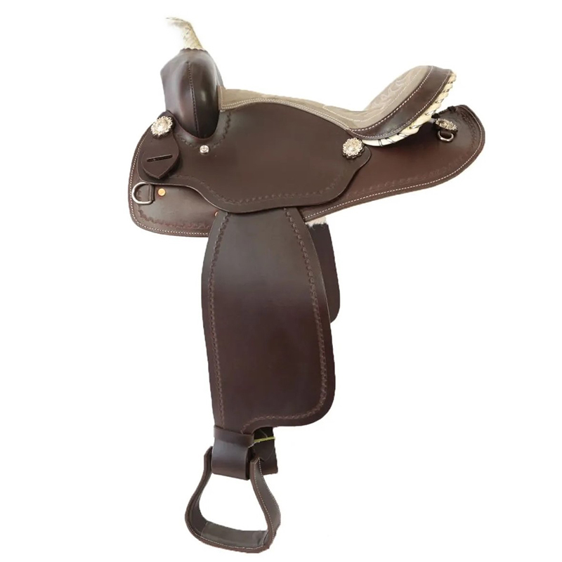 Sella Western Silver Star in cuoio, comoda ed affidabile. La sella western è realizzata per ragazzi che amano l’ equitazione. Seggio in pelle scamosciata.