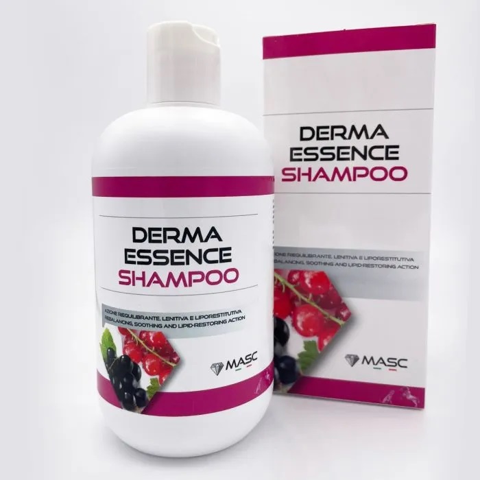Masc Derma Essence shampooย รจ un prodottoย riequilibranteย specifico per la detersione della cute degli animali soggetti a ricorrenti alterazioni cutanee, ad azione lenitiva idratante con Defensil, Oleophen, olio di Ribes nero, estratto di iperico e vitamina E. Indicato anche per (cani, gatti, cavallo).