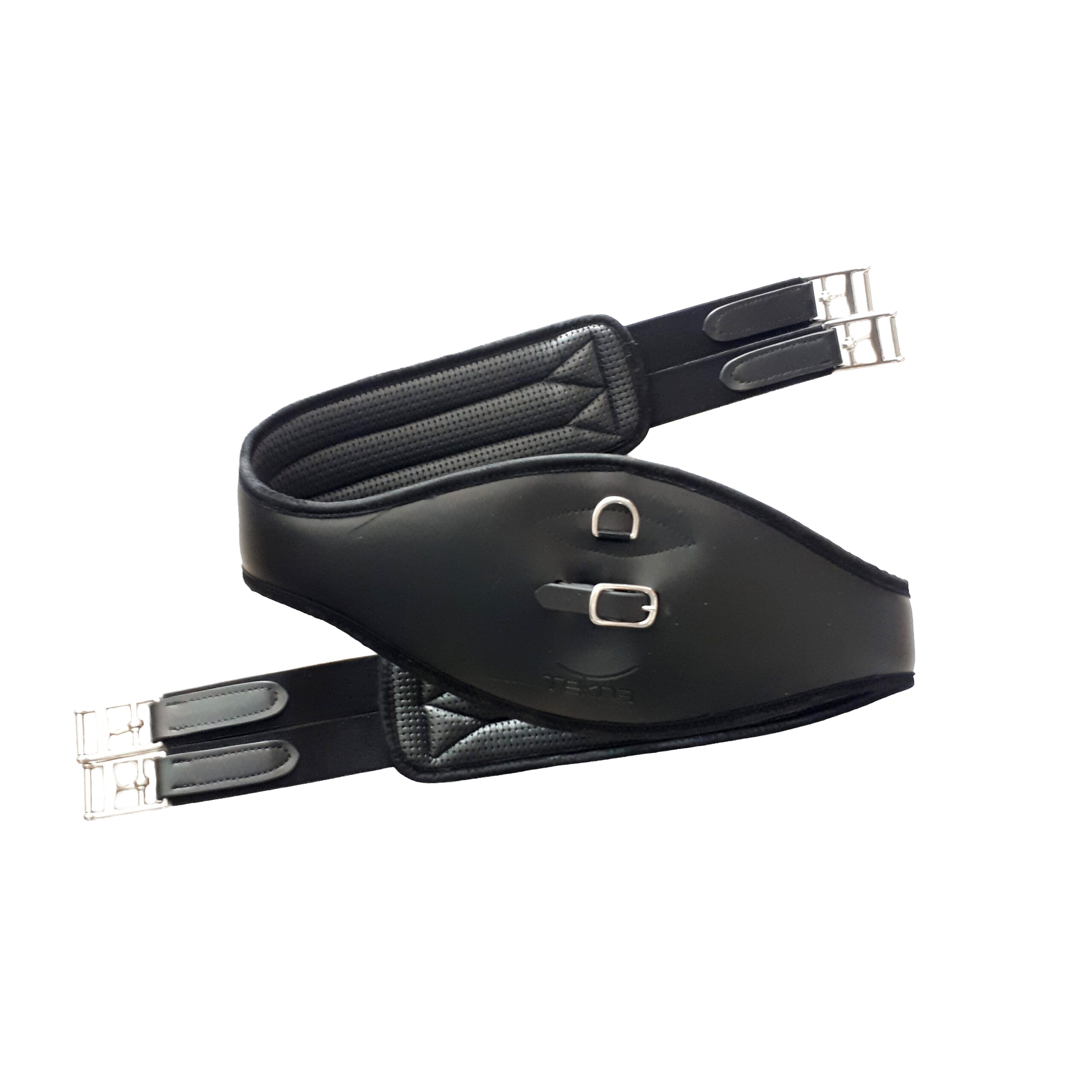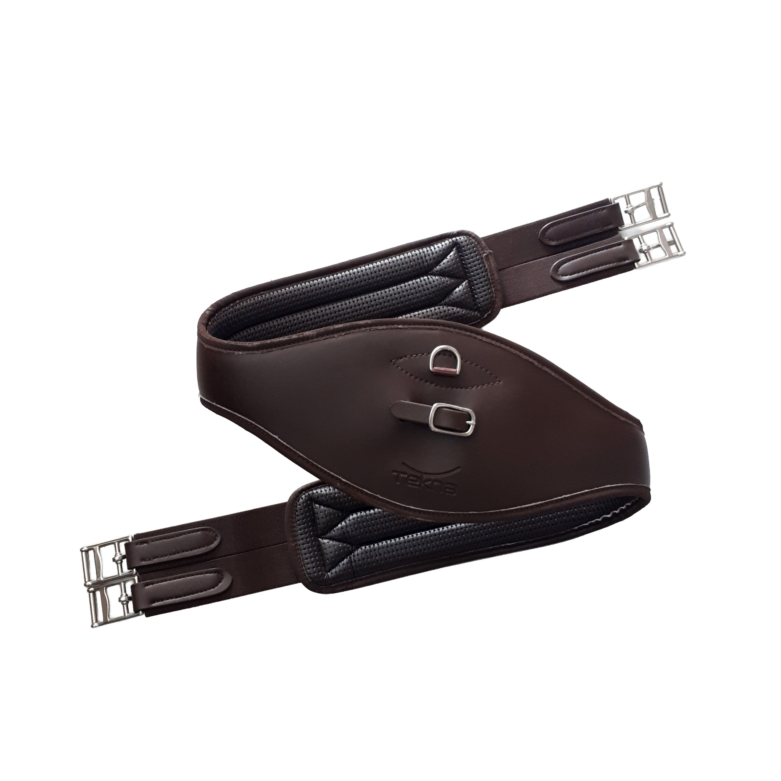 Sottopancia inglese da salto Tekna in pvc e neoprene. Il sottopancia Tekna è realizzato con materiali di qualità superiore che garantiscono una lunga durata, offre confort al cavallo ed inoltre protegge il cavallo da eventuali fiaccature. Il neoprene utilizzato ammortizza ed attutisce l’ attrito con manto del cavallo riducendo enormemente lo strofinio continuo che provoca le fiaccature. Le fibbie sono in acciaio inox e completo di aggancio per pettorale. (Articoli in Offerta perchè presenta delle imprecisioni “un pò scolorito”)