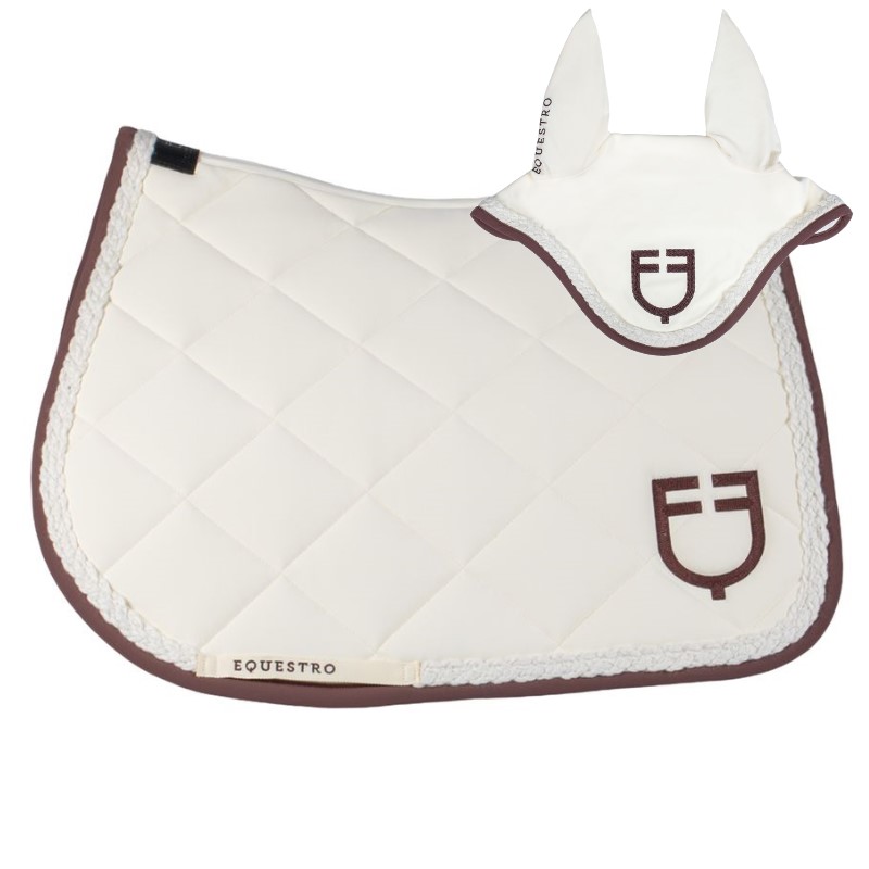 Recensisci per primo “Sottosella e Cuffietta Equestro Tessuto Tecnico Bordo con Treccia Bianco Antico Marrone”