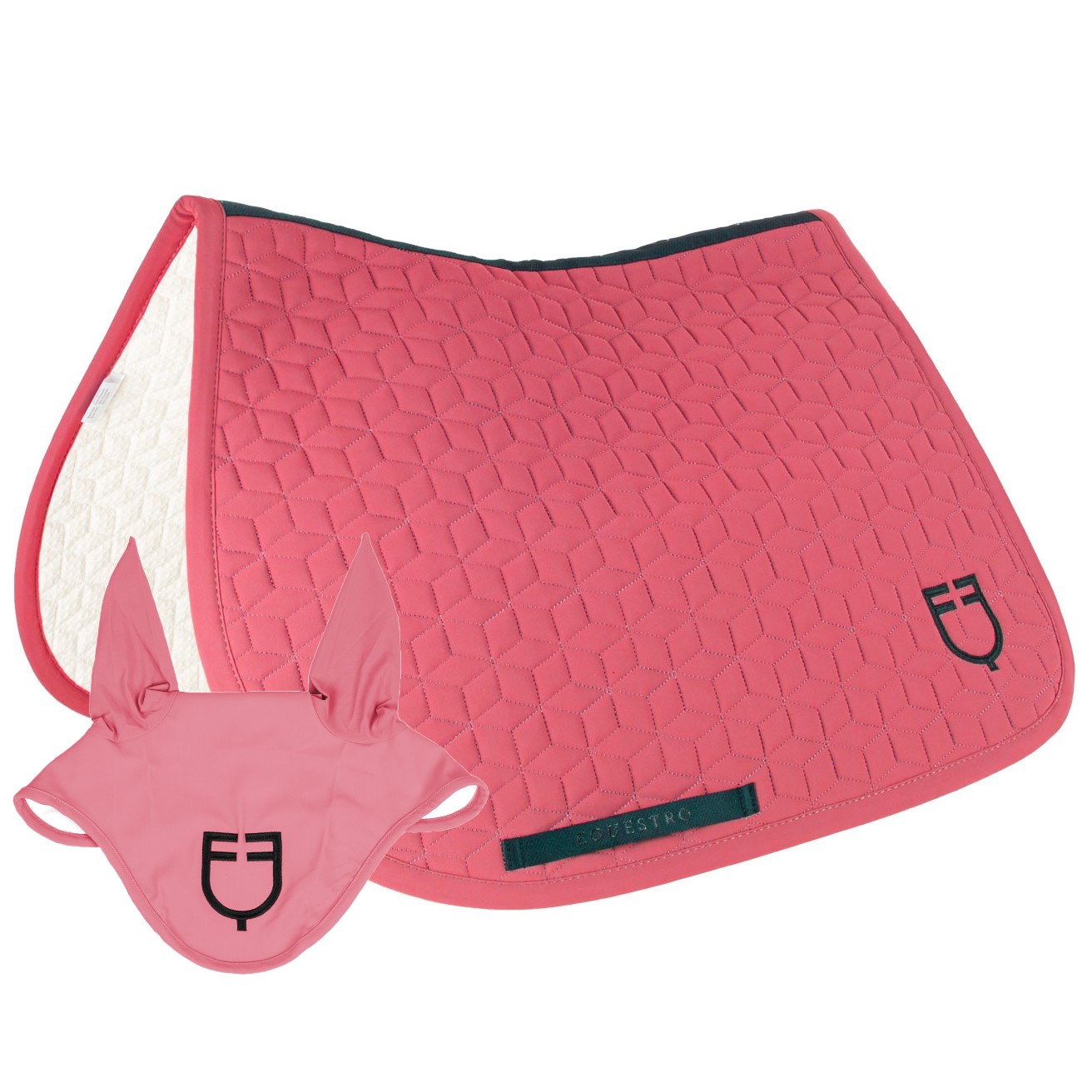 Sottosella e Cuffietta Equestro Trapuntato a Cubi Corallo