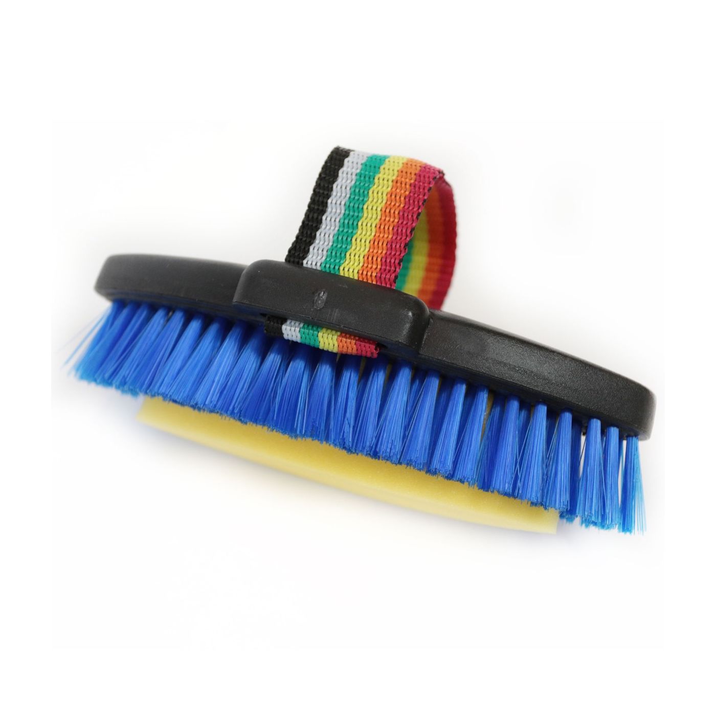 Spazzola con spugna per cavalli funzionale e molto comoda. Realizzata con setole sintetiche spesse con al centro una spugna porosa che oltre a rimuovere la sporcizia pulisce il pelo in profonditร