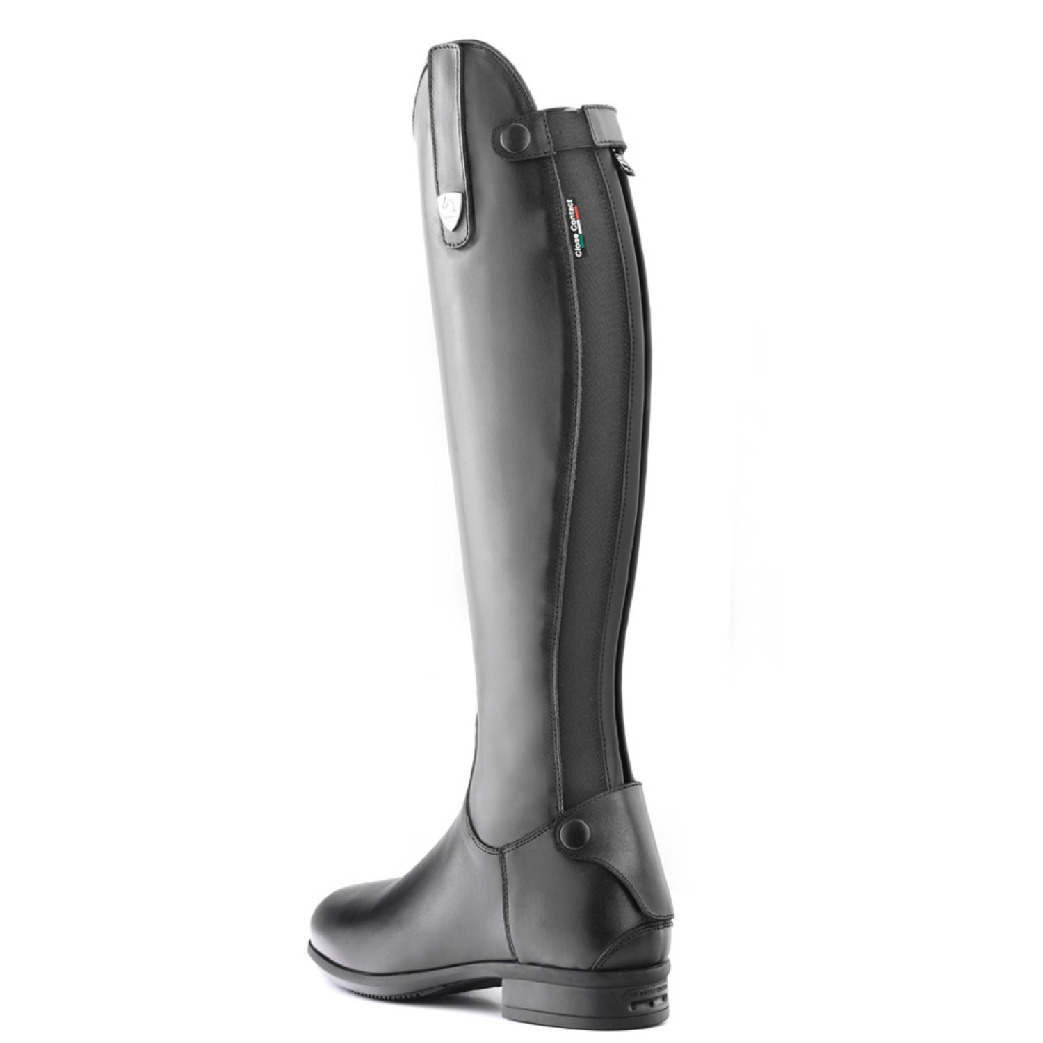 Stivali inglesi Tattini Close Contact modello Terrier In pelle di vitello liscia con cerniera lampo posteriore con TECNOLOGIA CLOSE CONTACT grazie all’inserto in CloseTEX sull’interno del gambale. Design Customizabile con cinturini intercambiabili. Bloccaggio Cursore ottimale con zip ykk, copri zip in CloseTEX e ferma zip in plexi. Plantare Rimodellato con fussbett anatomico ispessito, antibatterico ed estraibile. Suola in gomma con sistema di ventilazione AirBoost e AntiShock. Tomaia in pelle naturale morbida e fasciante. Fascia Elastica posteriore per una perfetta aderenza. Fodera in pelle naturale anti stringimento. Gli stivali della serie Close Contact, grazie alla tecnologia e al design 100% made in Italy, sono i primi al mondo ad utilizzare il CloseTEX (Close Contact Textile), che garantisce il massimo contatto con il cavallo, aumentando le performance di amazzoni e cavalieri. L’inserto in CloseTEX sul lato interno del gambale, dona allo stivale resistenza all’abrasione ed elevato grip e al tempo stesso morbidezza e durabilità. I volumi e le proporzioni della pianta e del gambale sono stati ricalcolati per aumentare il comfort e ottimizzare la vestibilità.