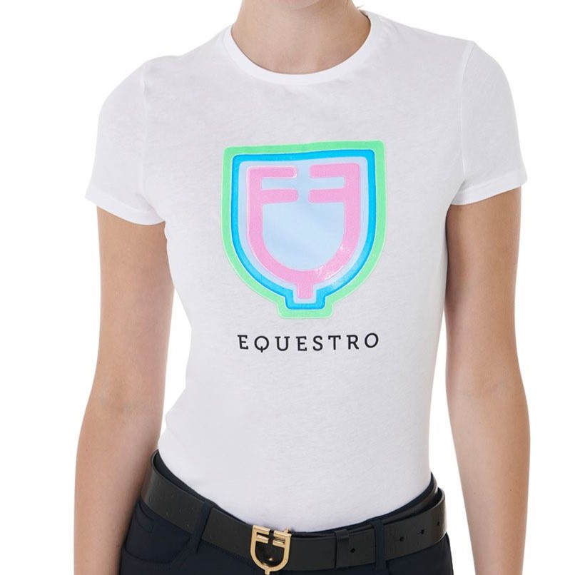 T-Shirt Equestro Donna con Logo a Rilievo Colorato Bianco