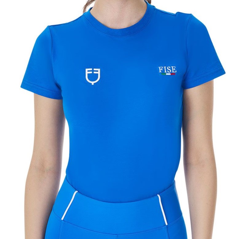 T-shirt donna slim fit Equestro X FISE in morbido cotone a mezza manica superย performante. Capo pratico e fresco che agevola lโevaporazione del sudore e garantisce unโottima vestibilitร e libertร dei movimenti.