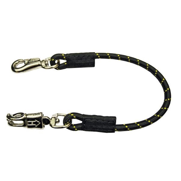 Tirante elastico dotato di doppio moschettone di cui 1 antipanico. Il tirante elastico รจ molto importante per legare il cavallo (in scuderia, nel rimorchio, nel cortile), offrendo unโ elasticitร maggiore al cavallo in modo tale da renderlo piรน tranquillo. Elastico ricoperto di tubo in plastica trasparente per una maggiore durata nel tempo.